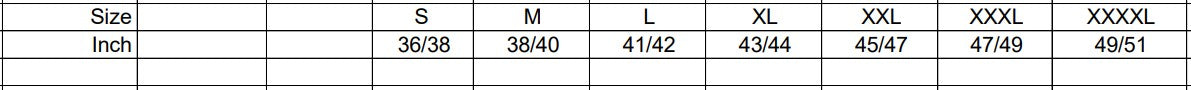 XS 34/36" S 36/38" M 38/40" L 41/42" XL 43/44" 2XL 45/47" 3XL 47/49" 4XL 49/51" 5XL* 51/53"