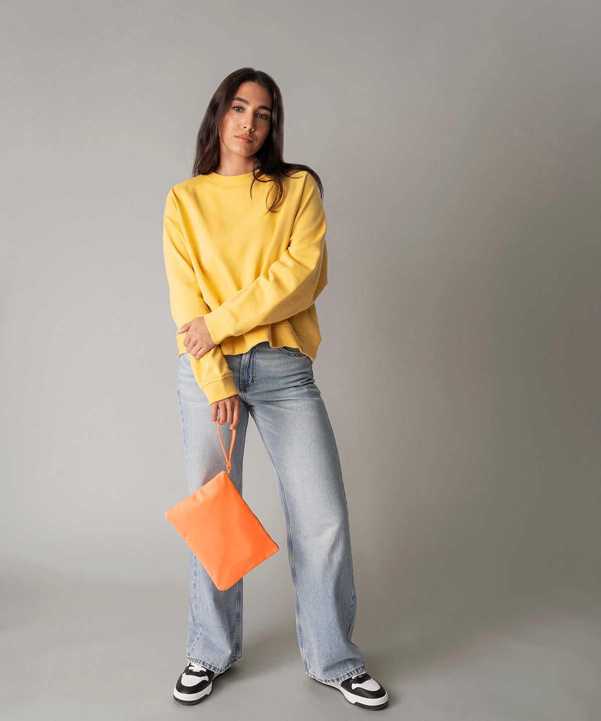 Featuring a premium fabric and finish, this elegant wristlet bag combines style and practicality. Its bright colour pop palette adds a fashionable touch, making it suitable for both casual and evening use. The zipped main compartment securely stores essentials, while the brushed gold metal zip and pull enhance its sophisticated look. A convenient wristlet strap allows for easy carrying, whether used as a clutch, cosmetic pouch, or travel organiser. Designed for multipurpose use, this bag is perfect for keeping small essentials organised. It contains recycled polyester, reflecting an eco-conscious choice, and the TearAway label makes it easy to rebrand for personal or promotional purposes.