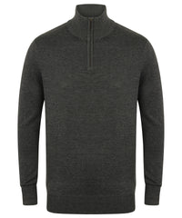 Men's fine knit quarter zip jumper at Af Merchandise, designed in a 12 gauge knit with a modern and comfortable finish. Features include a semi-fashioned sleeve for a better fit, 1x1 quarter zip neck rib, hem and cuffs for durability, and a stylish Henbury cut-out brand label. Completed with a metal zip and puller for a premium look.