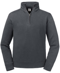 Men's garment with a contemporary fit and modern design. The outer 100% cotton layer provides the best surface for decoration. Features include herringbone neck tape for comfort and stability, slimmer shoulders and leaner arms with front-facing shoulder seams, and wider hem and cuff constructions. Cover seam armholes, cuffs and hem enhance durability, while side seams improve fit. Made with brushed fleece for softness. The kissing (covered) zip allows full cross-body decoration, complemented by a self-fabric cadet collar and a high-quality YKK metal (Antique Silver) ¼ zip.