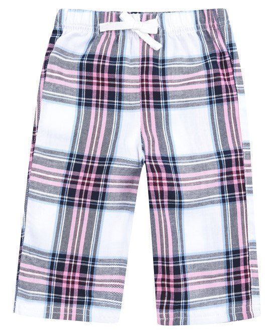 These woven tartan lounge pants are crafted in a classic checked pattern that brings timeless style and everyday comfort together. Designed with a full elasticated waist for a secure yet flexible fit, they feature a contrast mock drawcord detail for added charm. The plain hem finish gives them a neat and versatile look, making them perfect for lounging, casual wear, or bedtime. Made from 100% soft cotton, these pants offer a lightweight, breathable, and skin-friendly feel, ensuring comfort for little ones throughout the day or night.