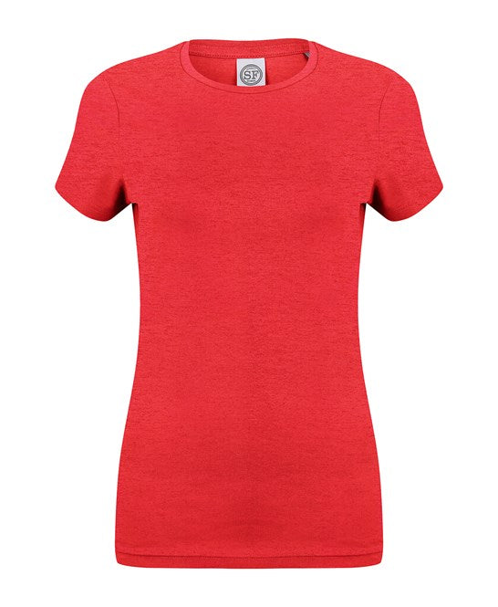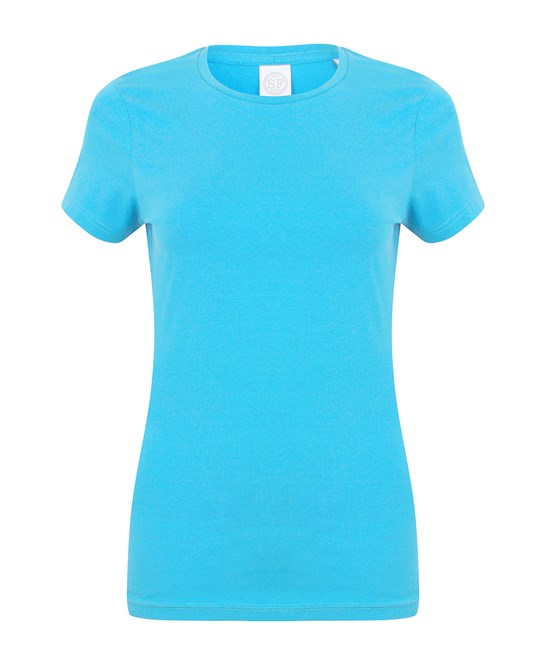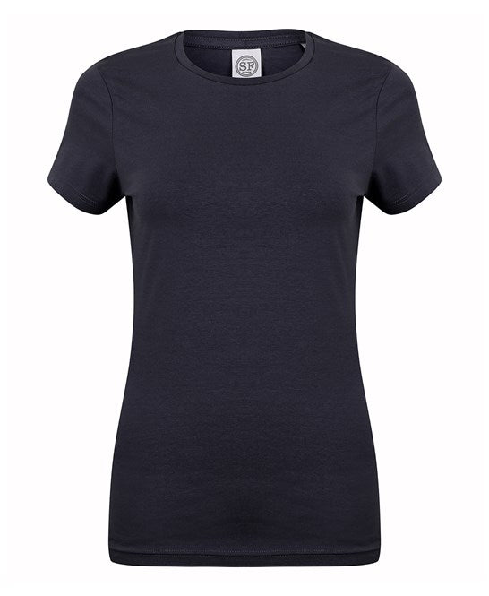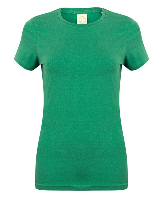 This women’s stretch t-shirt is designed for everyday comfort and style. Made with a soft enzyme wash for a smooth hand-feel, it combines 96% cotton and 4% elastane for a flexible fit that holds its shape. The modern long-line fit and crew-neck design with back neck binding provide a clean and flattering look. It also features a soft stretchy rib neckline and a tear-out label for added comfort and easy rebranding.