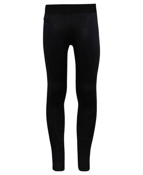 These are stretch leggings with a lightweight design and elasticated waistband for comfort. They are full-length and feature twin-needle stitching on the ankle hem for durability. The product contains no branded neck or waist label and includes removable Kimble or looped garment tags. The inner seam label holds essential product information, and the second label with brand details can be cut away. They also provide UPF 40+ protection. We recommend using block out vinyl and inks.