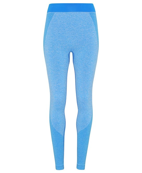 These are seamless leggings with a high waistband and ribbed cuffs for a secure and comfortable fit. The fabric is stretchy with ribbed detailing and features pockets on each upper thigh for convenience. The product contains no branded neck or waist label and includes removable Kimble or looped garment tags. The inner seam label holds important product information, and the second label with brand information can be cut away. We recommend using block out vinyl and inks.